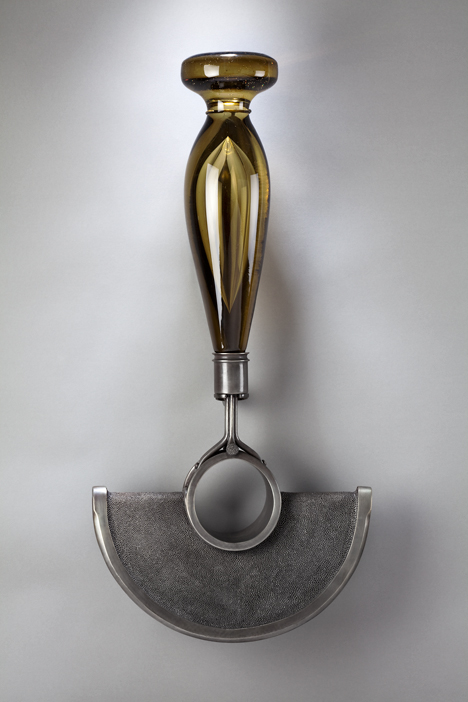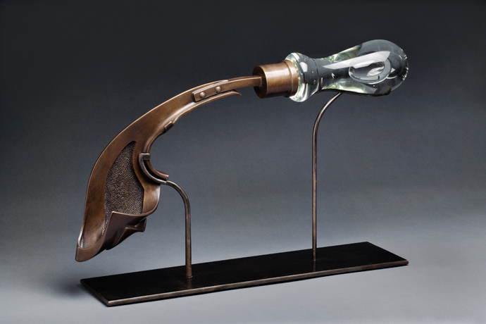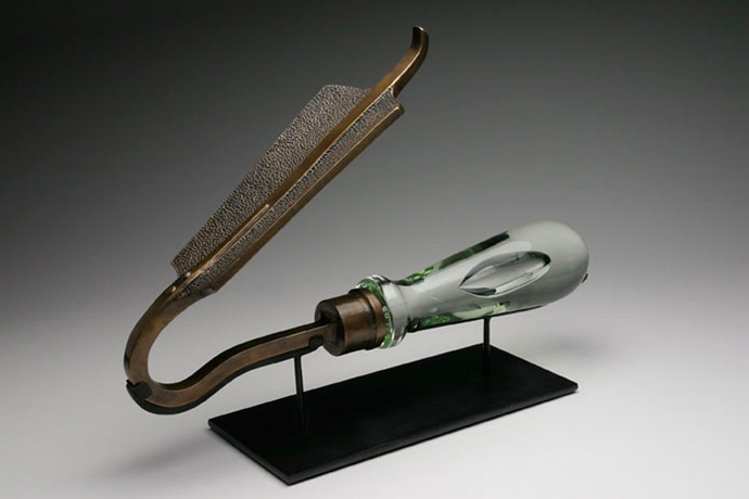 Implements & Objects began from an interest in the formal and functional aspects of industrial and utilitarian objects and tools. That interest prompted a collection of tools used by a variety of tradespeople, such as carpenters, shipwrights, shoemakers, gardeners, etc. The resulting work exaggerates scale and offers impractical solutions for imagined tasks.